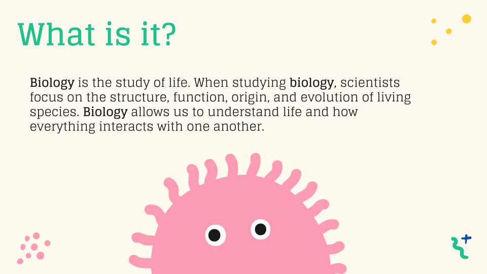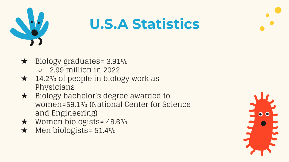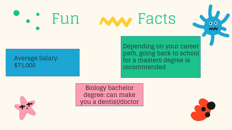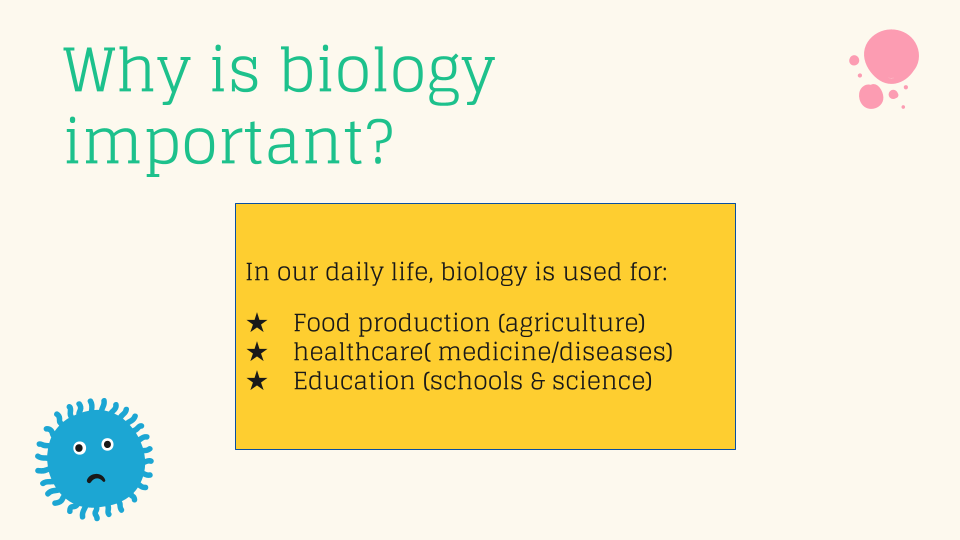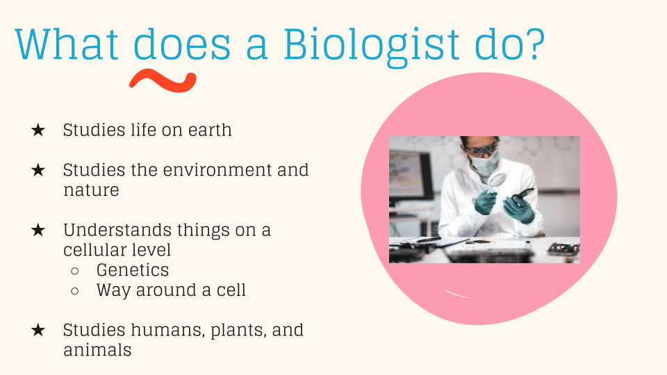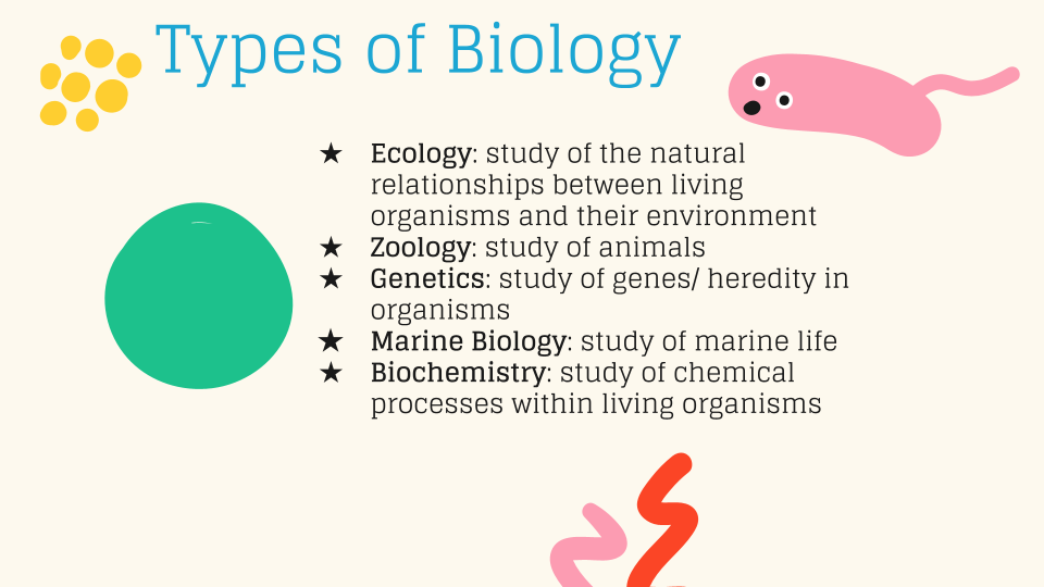 Al contrario, la sección en la presentación que más les interesó a los estudiantes fue sobre los diferentes tipos de biología. Enumeré algunos tipos, como bioquímica, zoología, ecología, genética y biología marina. Los estudiantes quedaron fascinados con la cantidad de tipos de biología que existen. A pesar de mencionar cinco tipos distintos, hay muchos más que podemos explorar.