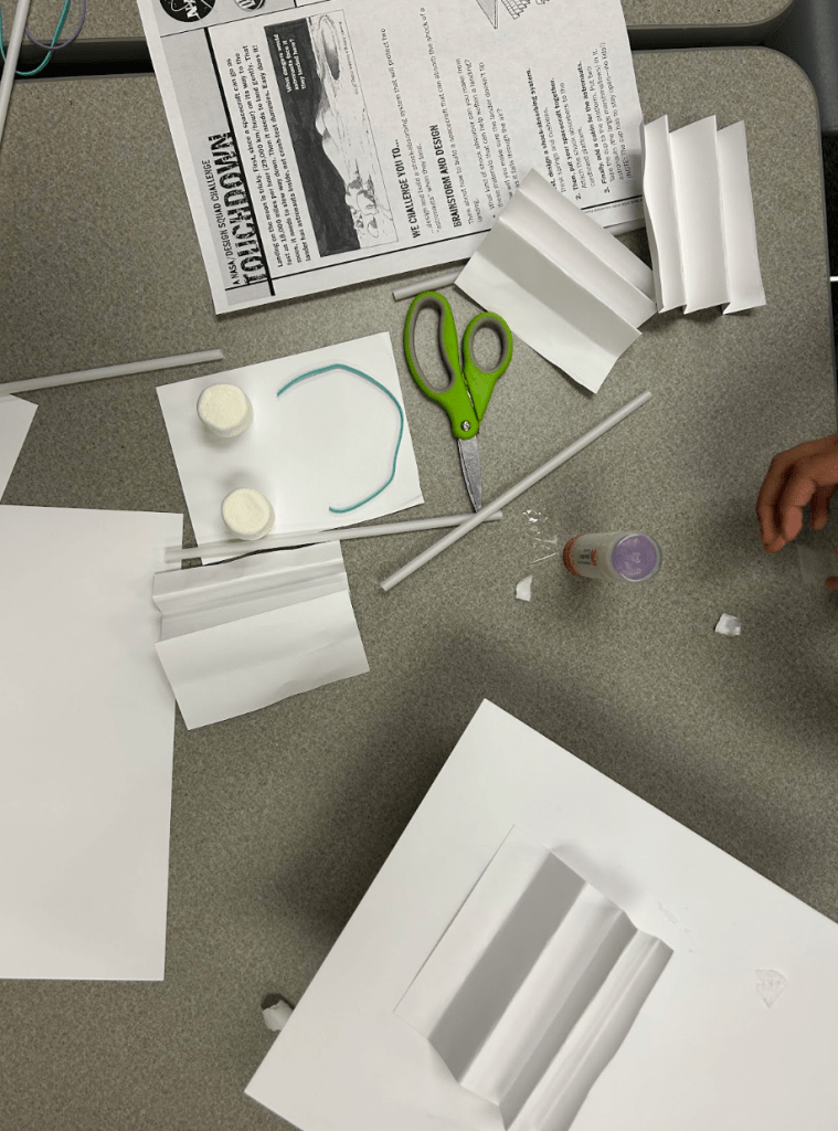 The activity itself used marshmallows, stock paper, rubber bands, straws, and plastic cups. It invited the participants to use materials to make a moon lander with a soft landing, protecting the two “astronauts” (large marshmallows) inside. After they succeeded, they got to eat their marshmallows as a little snack. The participants were engaged, excited, and prideful when they succeeded. This is the type of community the club strives to create, and hopes to continue to do in the future.