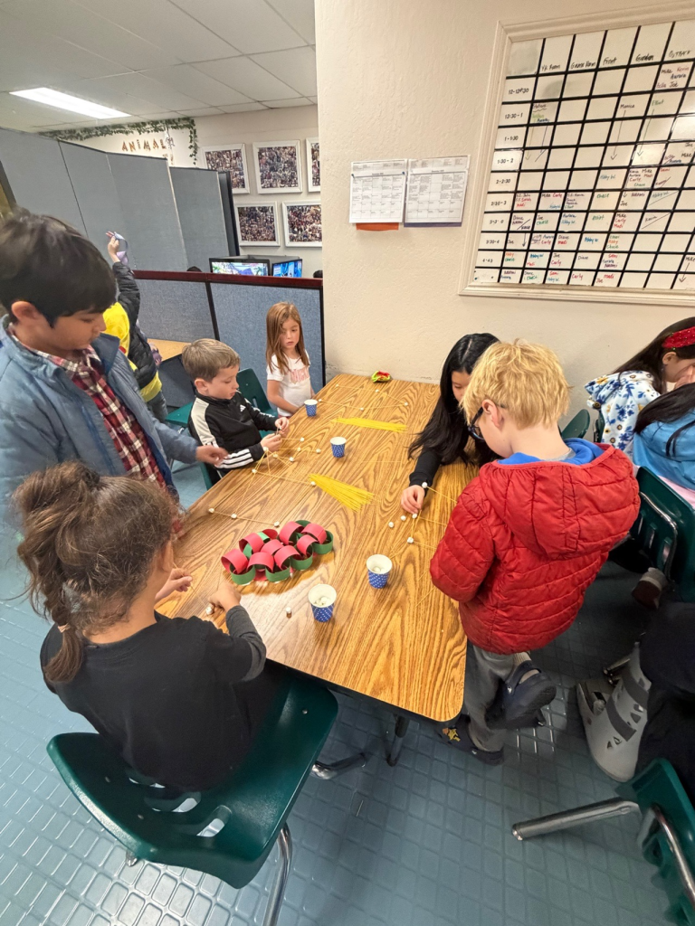 On December 15, Her STEM Space hosted an event at the Walnut Acres Elementary School Children’s Center. We taught elementary school students about engineering through building structures using spaghetti sticks and marshmallows. The students had a lot of fun trying to build the tallest tower, discovering how bases of different shapes supported their structures better, and eating marshmallows afterwards!