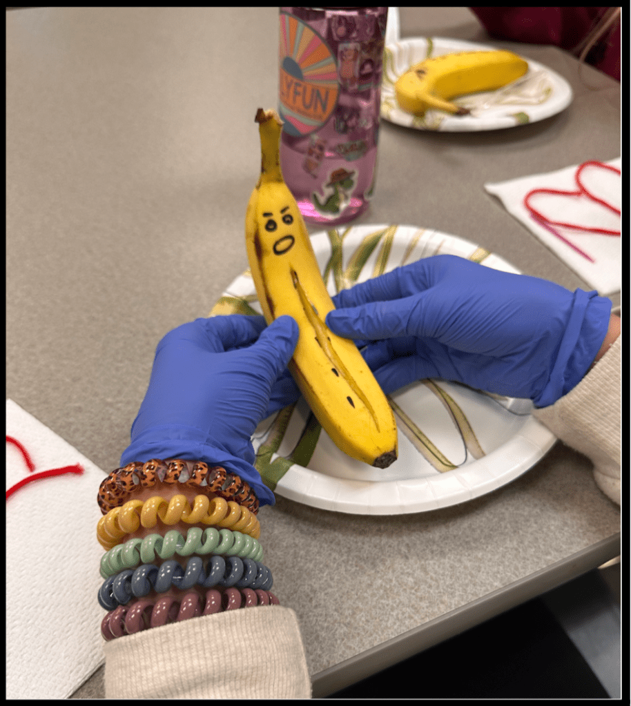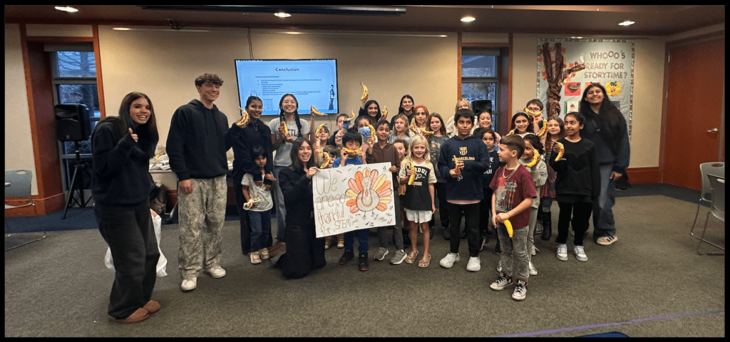 During the event, students practiced suturing on a replica of synthetic skin; in this case they used the peel of a banana. The children learned how to slice through skin, and effectively suture it back up to prevent scaring and ensure a safe healing, which allowed them to apply scientific knowledge in a real-world context. The theme of the event was STEMSGiving, and along the way children expressed their thankfulness for STEM